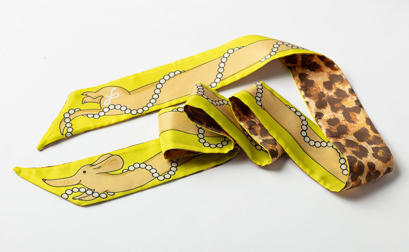Vznikl díky spolupráci s oděvní výtvarnicí Andreou Vytlačilovou, která zhmotnila naší představu: propojit jezevčíka, perly, neon a zvířecí motiv do jednoho šátku, což se ji podařilo. Jak jej budete venčit, je jen na Vás, možností je nespočet,HAF